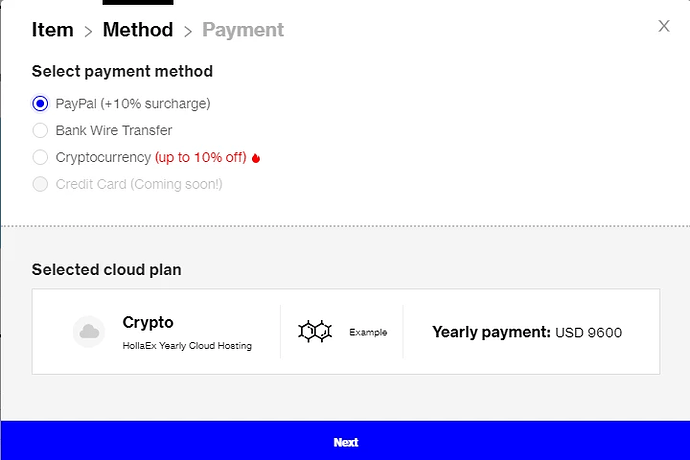 选择好后,您将进入付款界面。 bitHolla 支持 PayPal、银行转账或加密付款(XHT 付款为您提供 10% 的折扣)。 我们强烈推荐年度计划,因为您将获得更优惠的价格,最多可享 35% 的折扣!