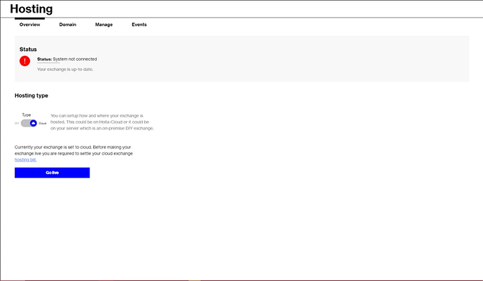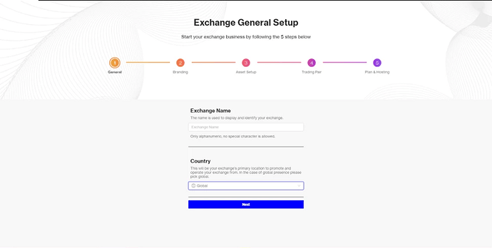 上线后,您可以通过访问交易栏的 URL 来设置主管理帐户。如果您使用的是云服务,它的URL网址为“myexchange.bitholla.cloud”。
