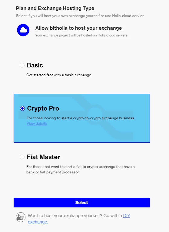 现在您必须为您的交易选择托管服务。 HollaEx Kit为您的代币提供了多种选择,其分为两部分:Cloud hostage 和 DIY 交易。