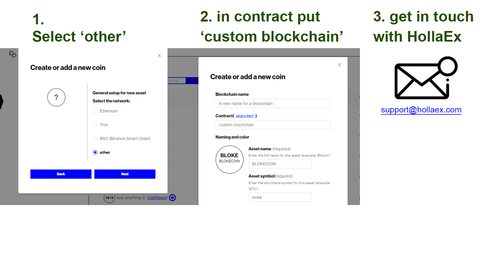 We have created a new blockchain based on Hyperledger and we want to add that blockchain in Hollaex Assets. I have checked the Assets option and i see option to add tokens using the contract address if the token is on ETH, Tron or BSC but couldn’t figure out how to add custom blockchain which has it’s own Mainnet. Can someone guide us on how to do it ?